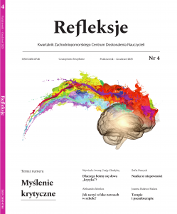 Temat niniejszego numeru „Refleksji” należałoby jednak wziąć w cudzysłów, ale tylko dlatego, że podejmujemy, nie pierwszą w historii rzecz jasna, próbę zdefiniowania „myślenia krytycznego”. Już z wywiadu numeru (Dlaczego boimy się słowa „krytyka”?), którego bohaterką jest dr hab. Iwona Czaja-Chudyba, prof. Uniwersytetu Komisji Edukacji Narodowej w Krakowie, można wyciągnąć wniosek, że dyskurs myślenia krytycznego w humanistyce i naukach społecznych – w wymiarze teoretycznym i praktycznym, ujmowanym pedagogicznie, psychologicznie i socjologicznie – to praca w toku, wciąż niedomknięty rozdział w księdze późnej nowoczesności.